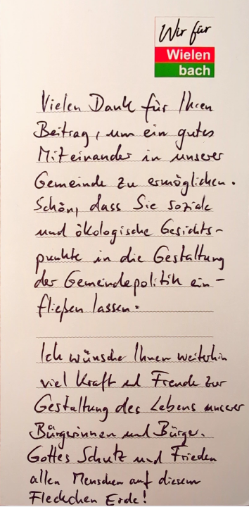 Vielen Dank für Ihr Vertrauen, Ihre Ideen und Ihr Engagement für Wielenbach.