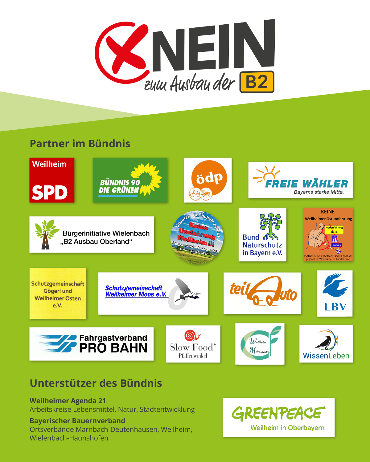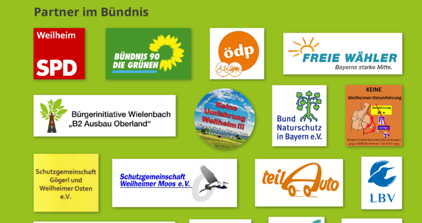 Ein breites Bündnis gegen den Ausbau der B2. Wir für Wielenbach spricht sich auch deutlich dagegen aus, ob durch Wielenbach oder Weilheim oder sonstwo!